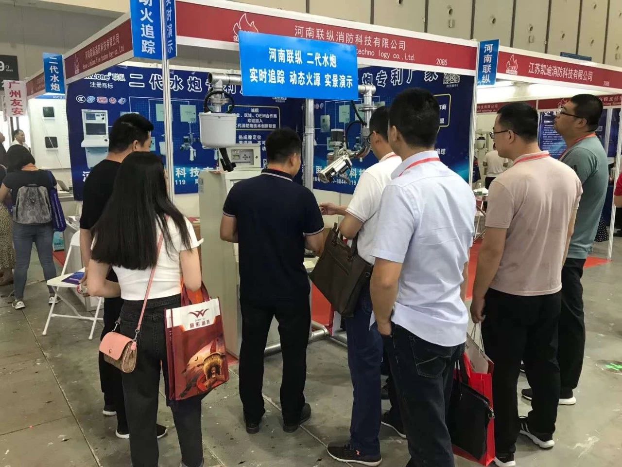 ? ? ? ?聯(lián)縱消防此次展出得是基于紅外熱成像原理與中國空空導(dǎo)彈研究院合作研發(fā)出‘鷹眼LINKZOOM’制導(dǎo)技術(shù)的二代消防水炮 ,該核心技術(shù)是利用非制冷焦平面陣列熱成像傳感器,采取現(xiàn)場的實(shí)時(shí)測溫信號,通過面陣內(nèi)各像素的溫度變化來完成定位。掃描找火時(shí)利用陣列熱成像傳感器進(jìn)行畫面式掃描,每個(gè)像素點(diǎn)的溫度都能實(shí)時(shí)計(jì)算,一經(jīng)發(fā)現(xiàn),立即鎖定,實(shí)時(shí)追蹤動態(tài)火源。定位更精確,應(yīng)用范圍更廣泛,可靠性大大提高。